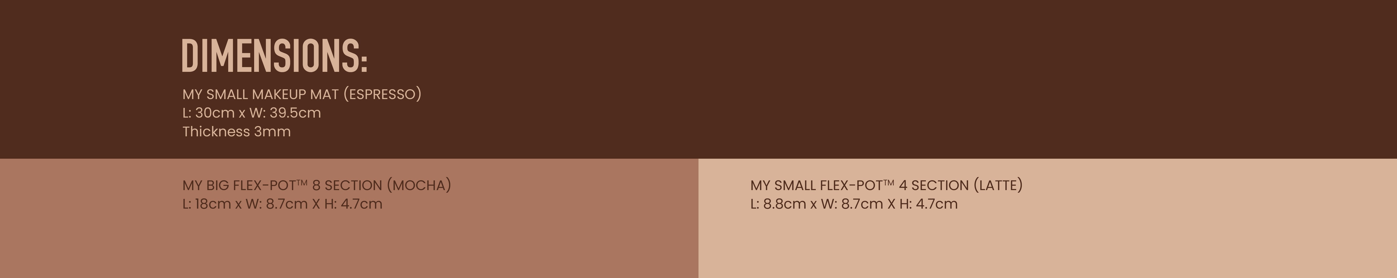 Featuring Espresso, Mocha and Latte inspired tones, MY SMALL MAKEUP MAT, MY BIG FLEX-POT™ 8 SECTION and the new MY SMALL FLEX-POT™ 4 SECTION come together as a warm, elevated system that feels considered, calm and completely your own. A special addition, the MYKITCOFFEE COASTER, gives your cup its place on set because the ritual matters just as much as the routine.